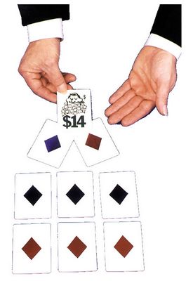 Then explain that you were once taken by this game, and show how you were taken, losing $3 because every time you thought you picked the blue card, it was red.
